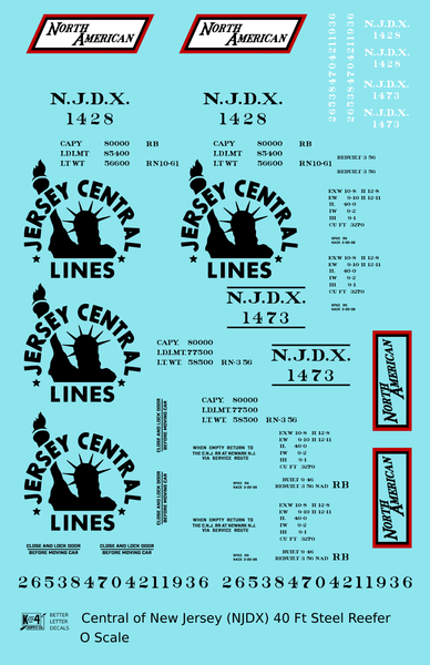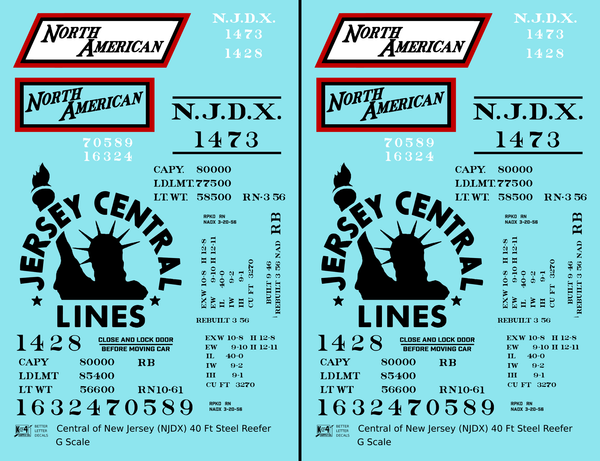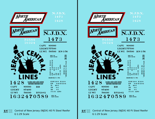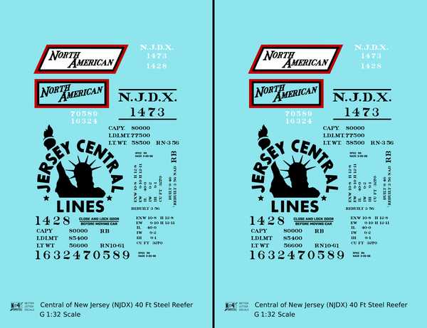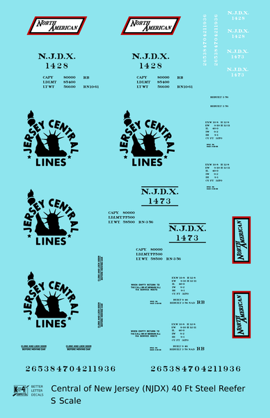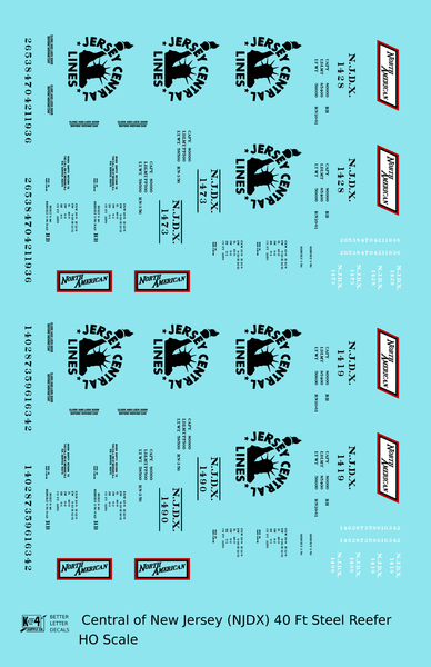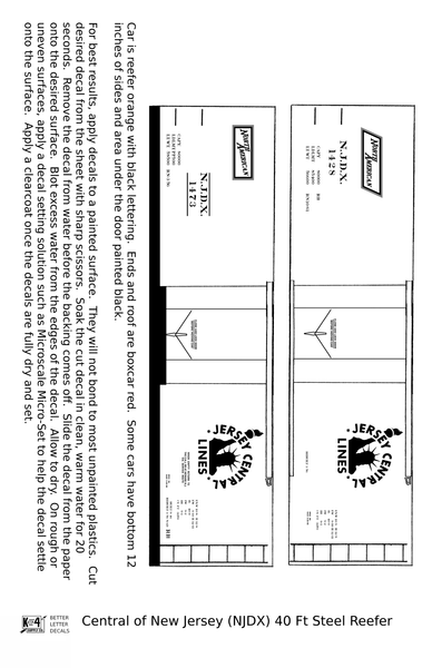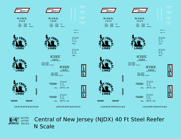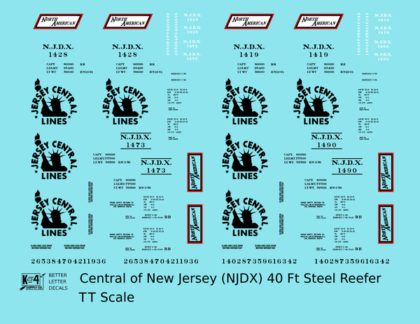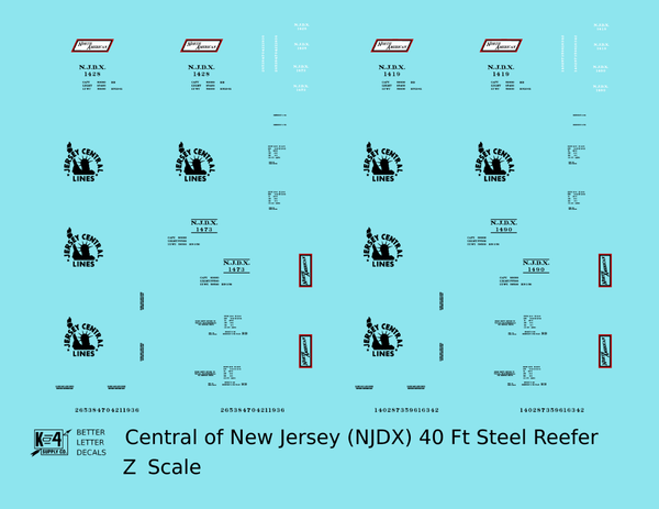 Central Of New Jersey 40 Ft Steel Ice Reefer Black NJDX - Decal - Choose Scale