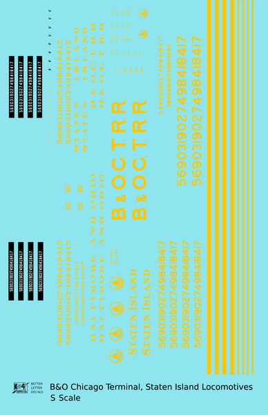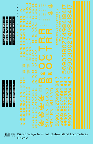 B&O Chicago Terminal and Staten Island B&OCT SIRT Diesel Switcher Locomotive Yellow - Decal - Choose Scale