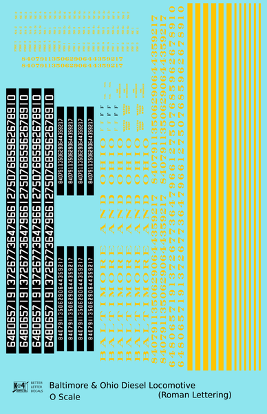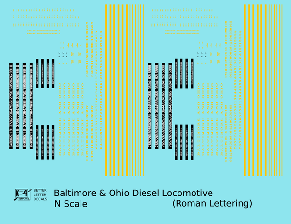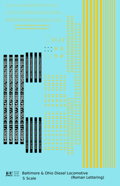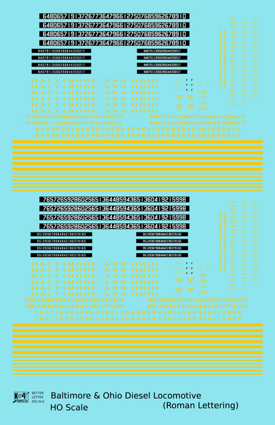 > Baltimore and Ohio Diesel Locomotive Yellow Early Freight Scheme - Decal - Choose Scale