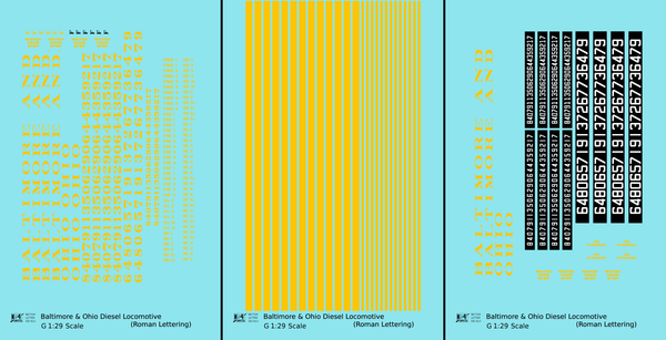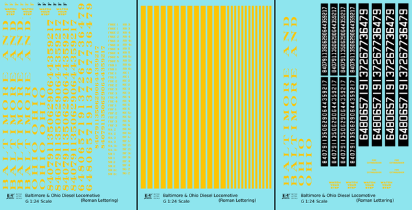 Baltimore and Ohio Diesel Locomotive Yellow Early Freight Scheme - Decal - Choose Scale