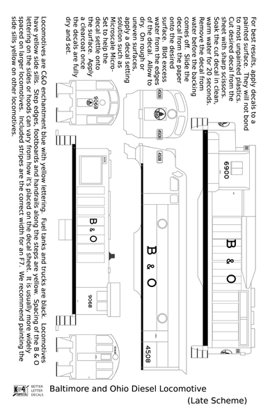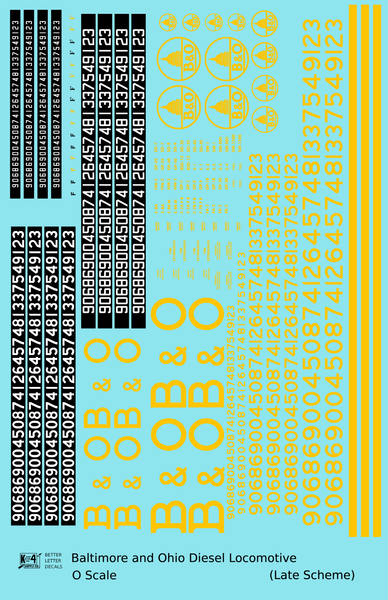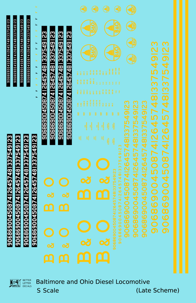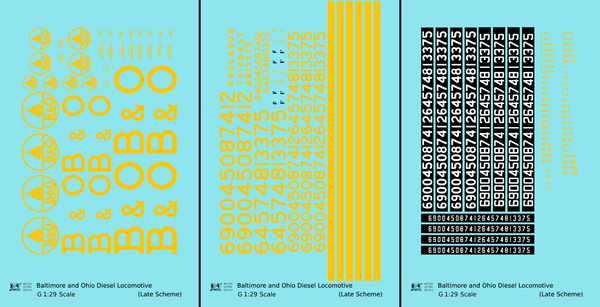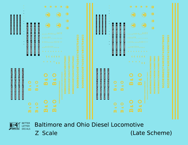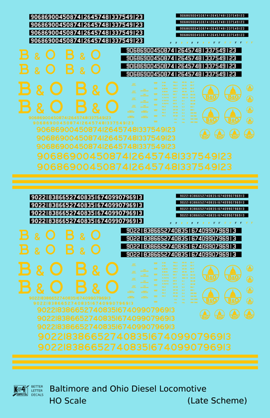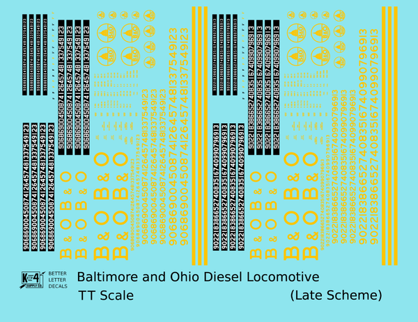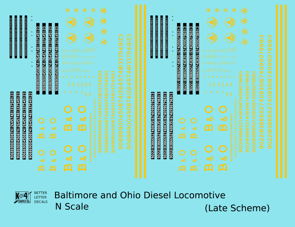Baltimore and Ohio Diesel Locomotive Yellow Late B & O Scheme - Decal - Choose Scale