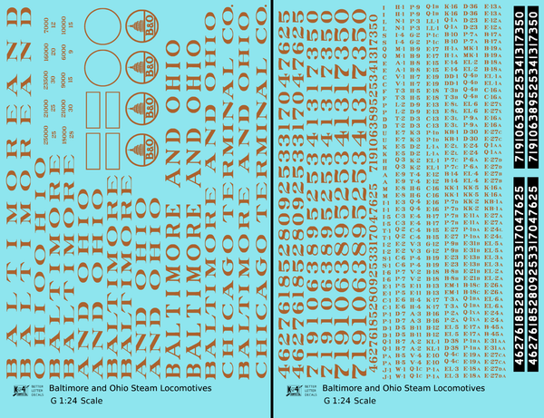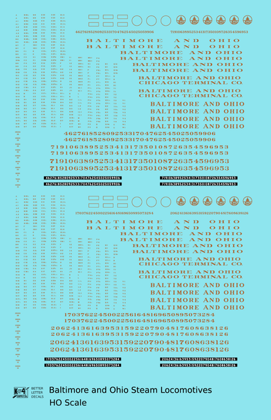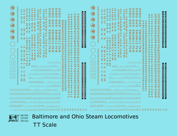 Baltimore & Ohio B&O B&OCT Steam Locomotive Bronze Gold - Decal - Choose Scale