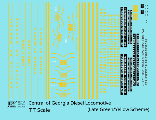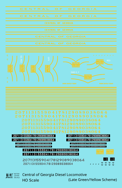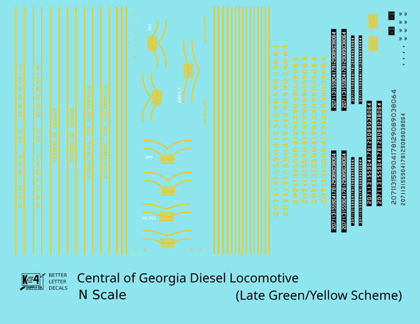 > Central Of Georgia Diesel Locomotive Yellow Collard Scheme - Decal - Choose Scale