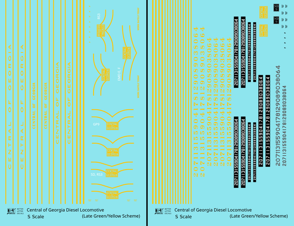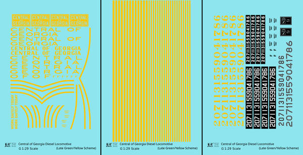 Central Of Georgia Diesel Locomotive Yellow Collard Scheme - Decal - Choose Scale