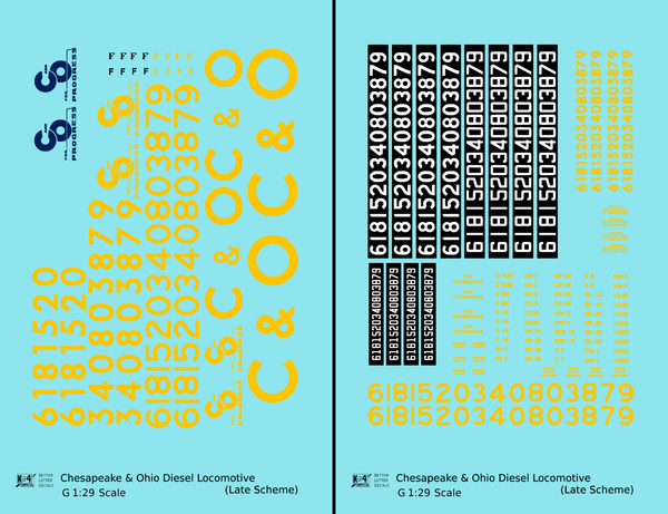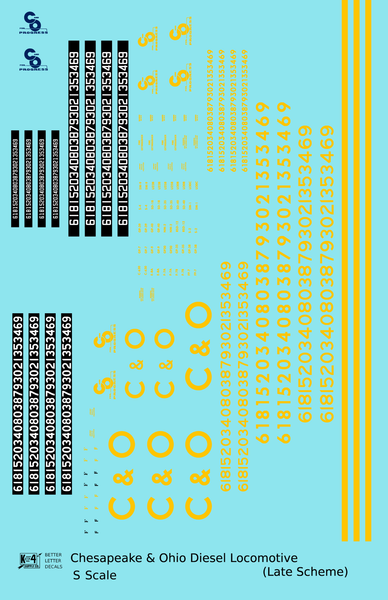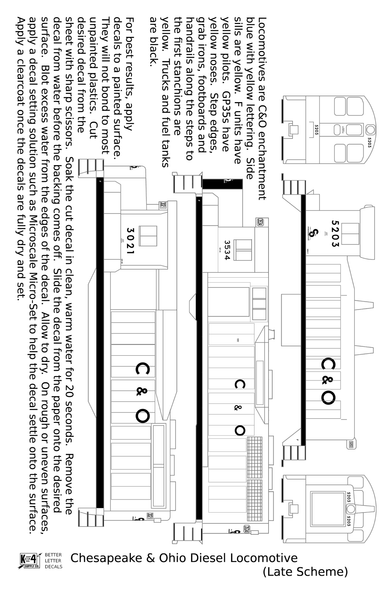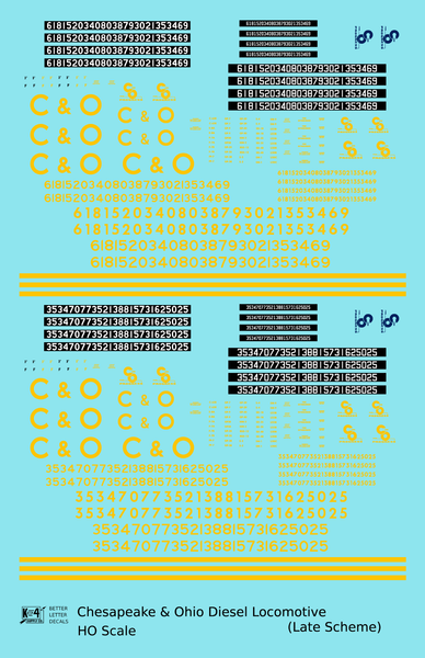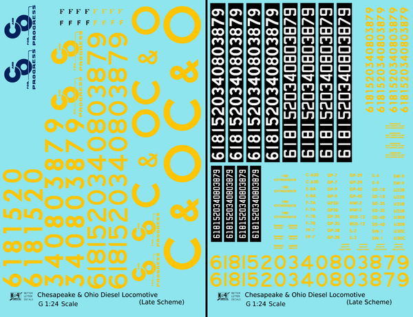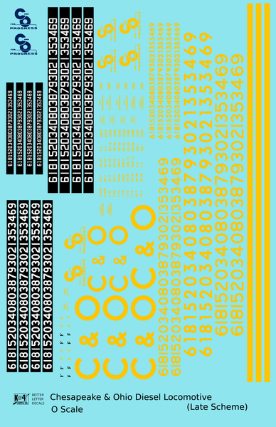 > Chesapeake and Ohio Diesel Locomotive Yellow Late C & O Scheme - Decal - Choose Scale