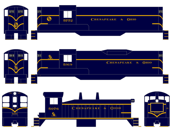 > Chesapeake and Ohio Diesel Locomotive Yellow Roman Lettering - Decal - Choose Scale