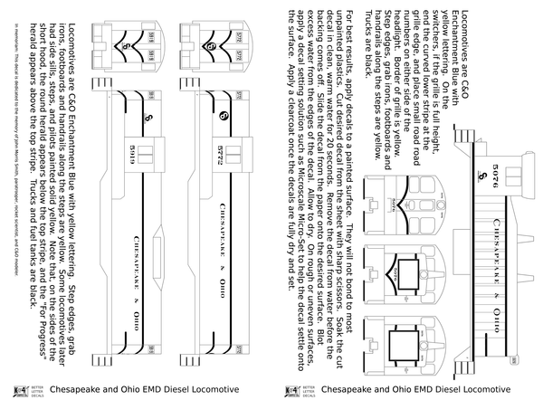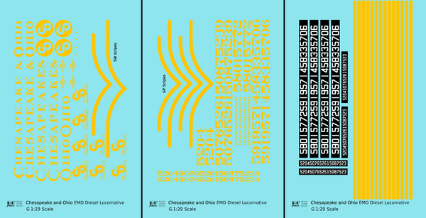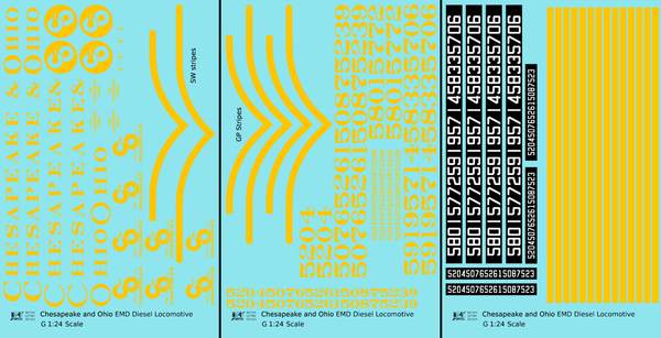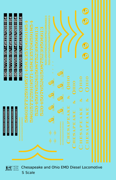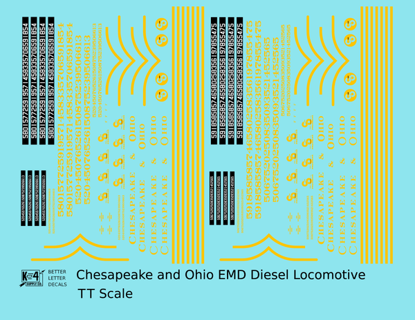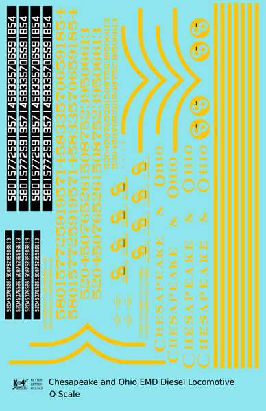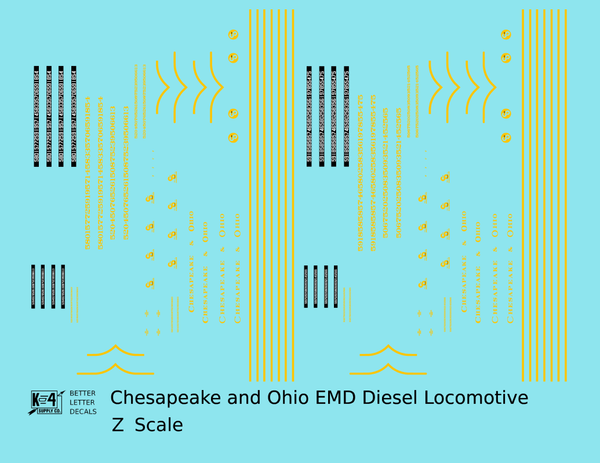 Chesapeake and Ohio Diesel Locomotive Yellow Roman Lettering - Decal - Choose Scale