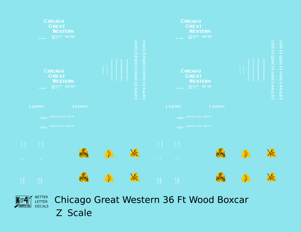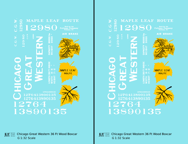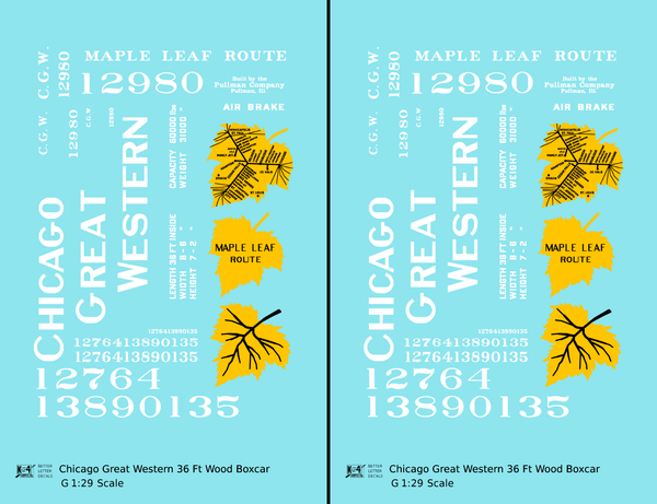 > Chicago Great Western 36 Ft Wood Boxcar White and Yellow Leaf Herald - Decal - Choose Scale