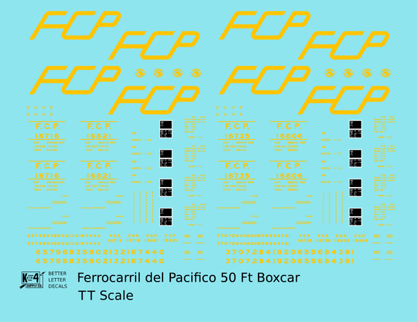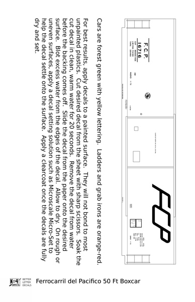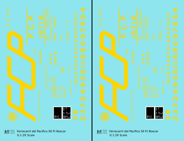 FCP Ferrocarril Del Pacifico 50 Ft Boxcar Yellow - Decal - Choose Scale