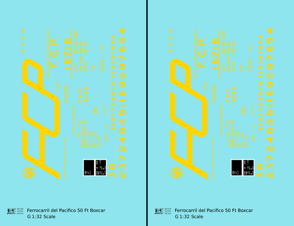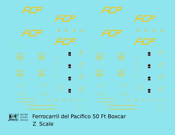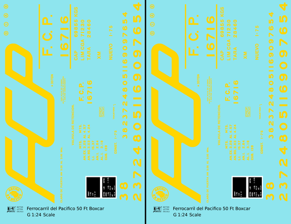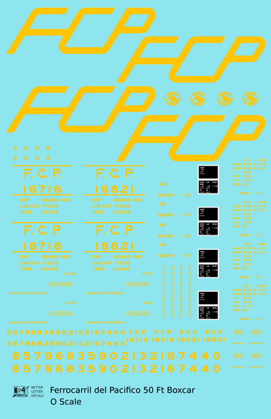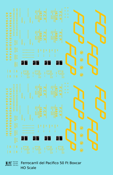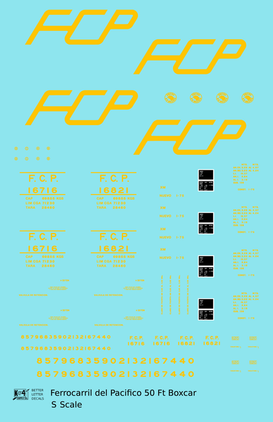 > FCP Ferrocarril Del Pacifico 50 Ft Boxcar Yellow - Decal - Choose Scale