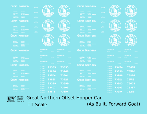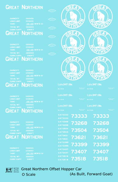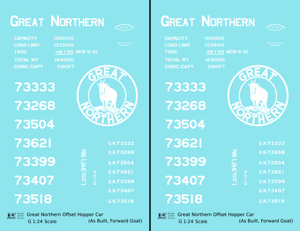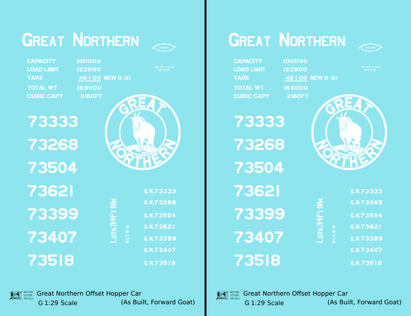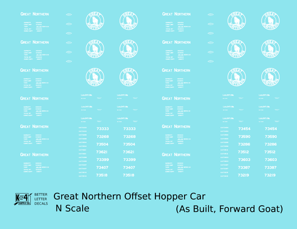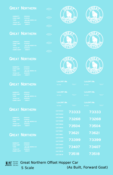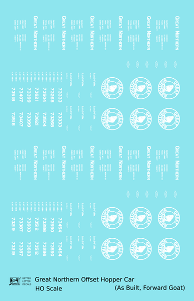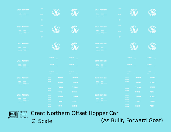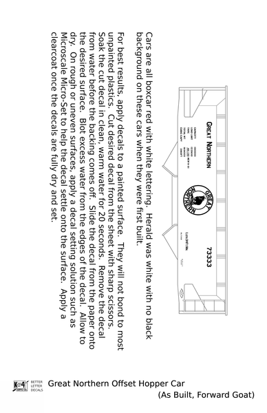Great Northern Offset Twin Hopper White As Built Forward Goat - Decal - Choose Scale
