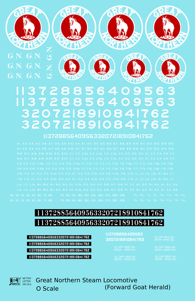 > Great Northern Steam Locomotive White and Red Forward Goat - Decal - Choose Scale