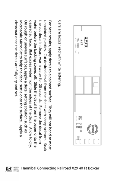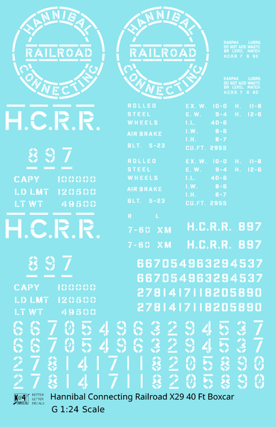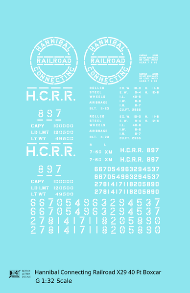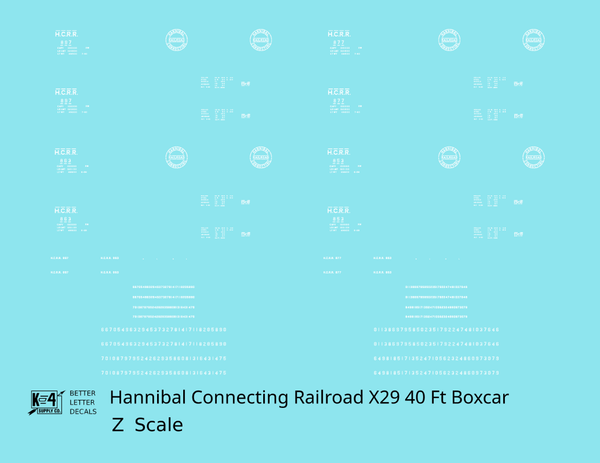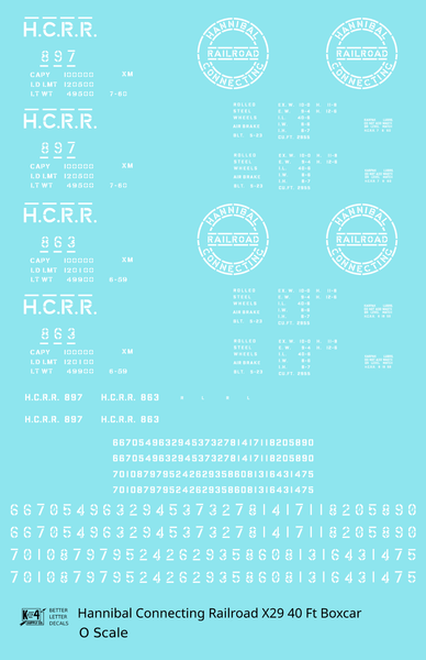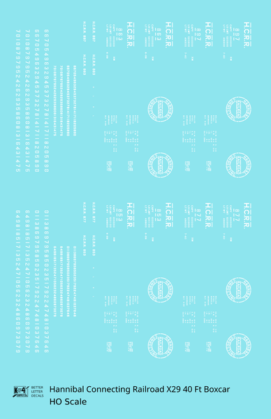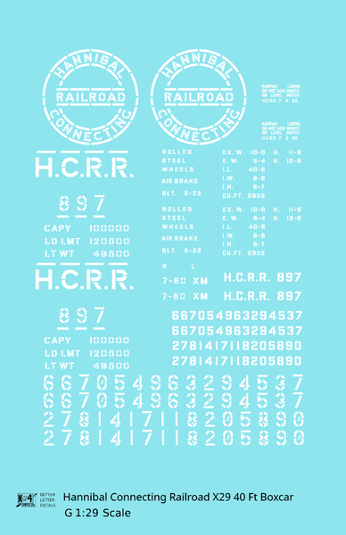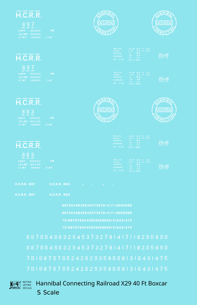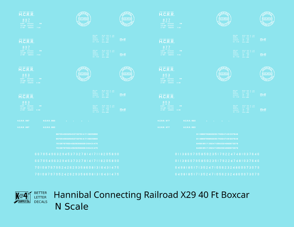 Hannibal Connecting Railroad 40 Ft X29 Boxcar White Missouri - Decal - Choose Scale