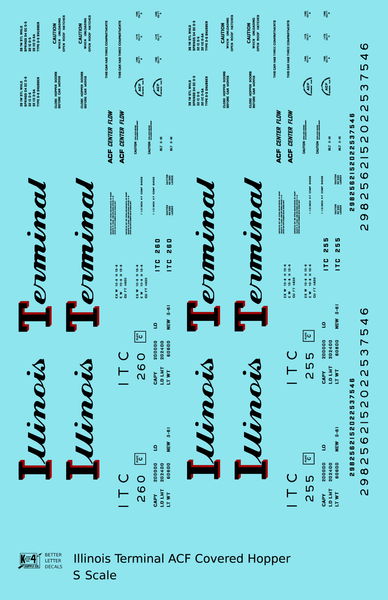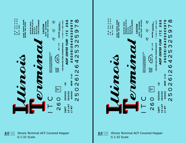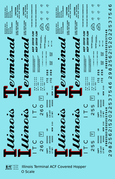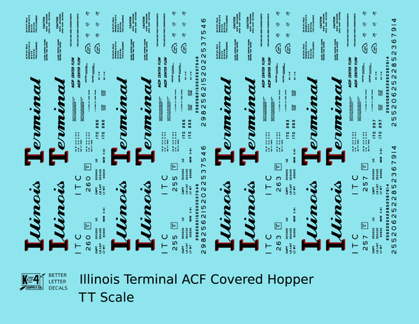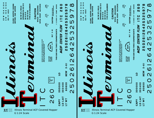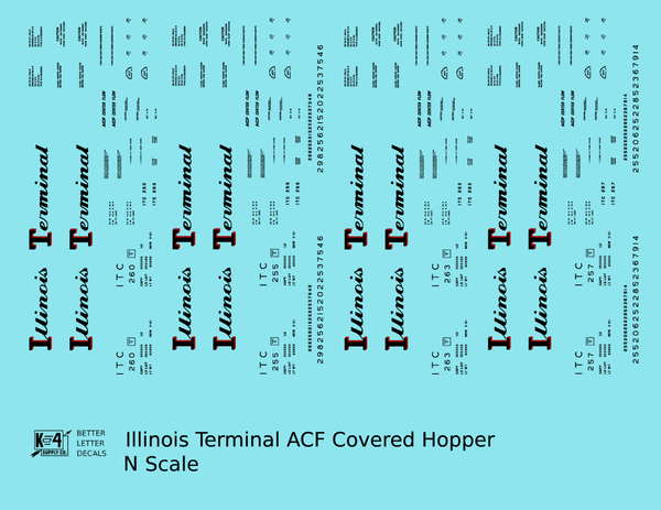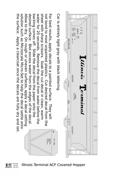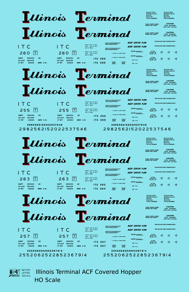 Illinois Terminal ACF Covered Hopper Black - Decal - Choose Scale