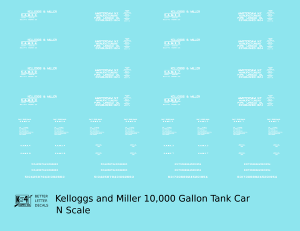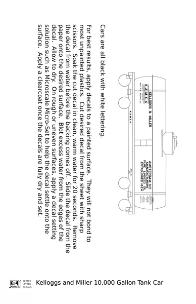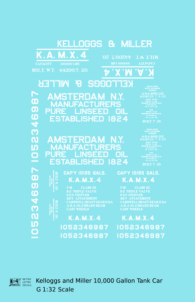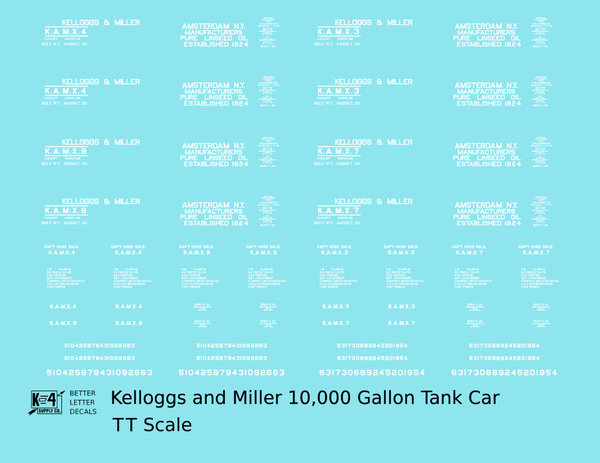 Kelloggs and Miller Linseed Oil Tank Car White Amsterdam, NY - Decal - Choose Scale