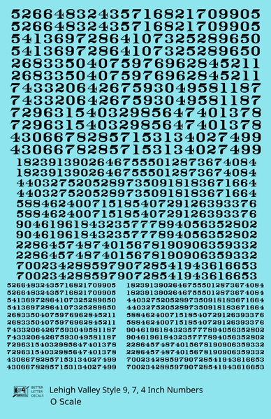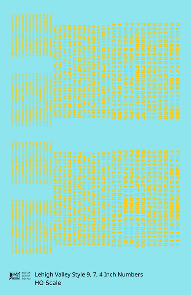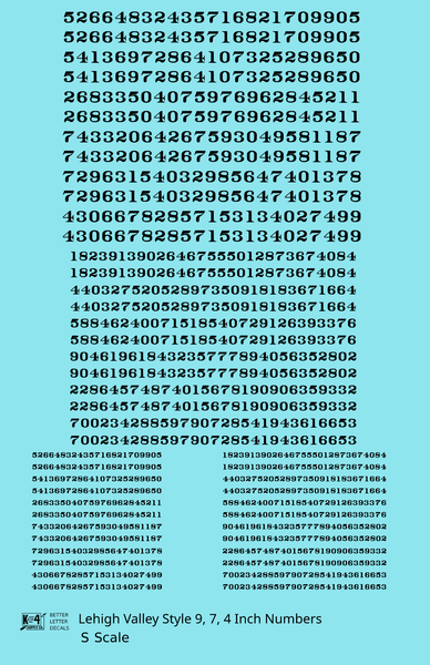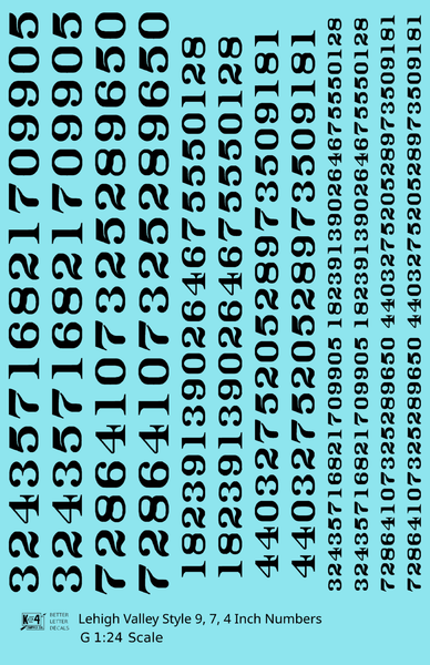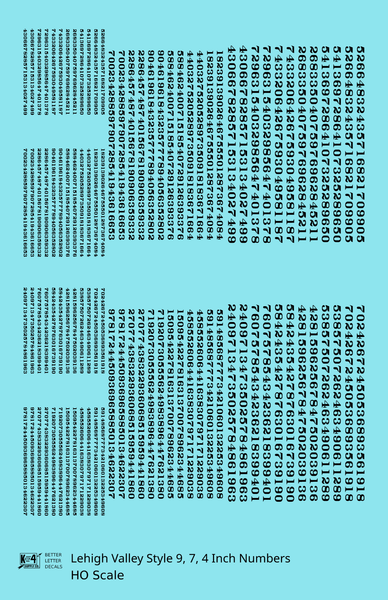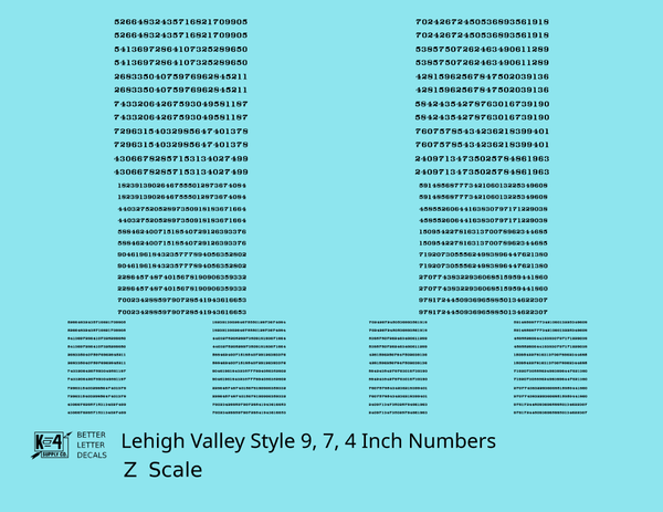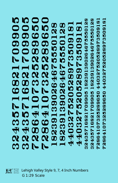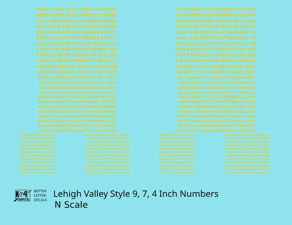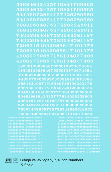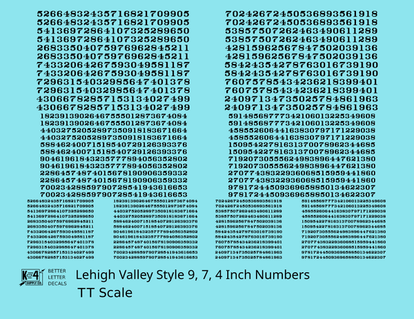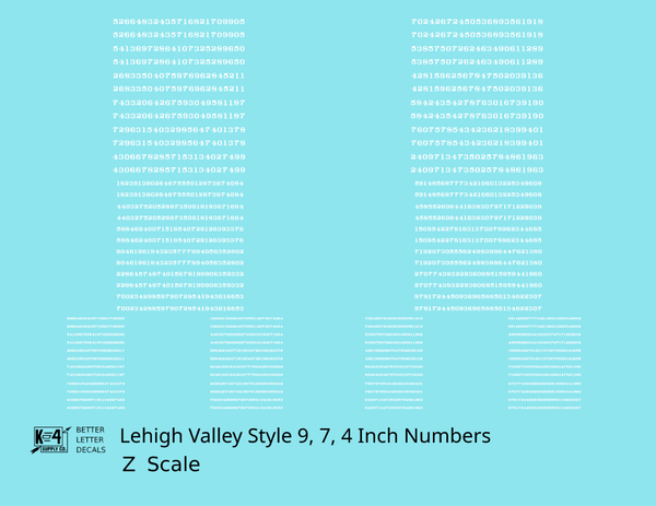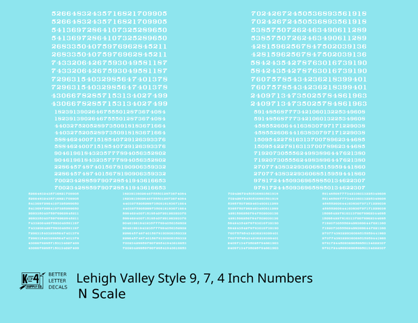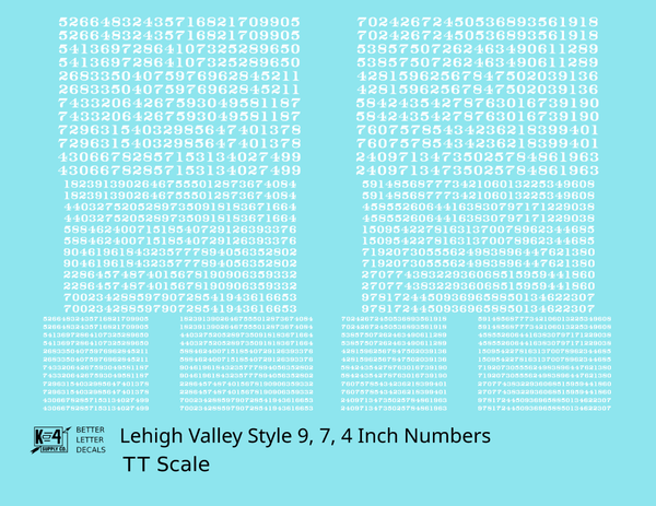 Lehigh Valley Freight Car Numbers White 9, 7 and 4 Inch Renumber - Decal - Choose Scale and Color
