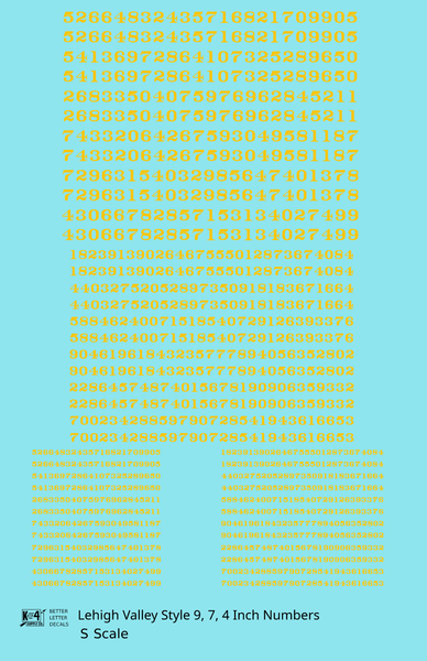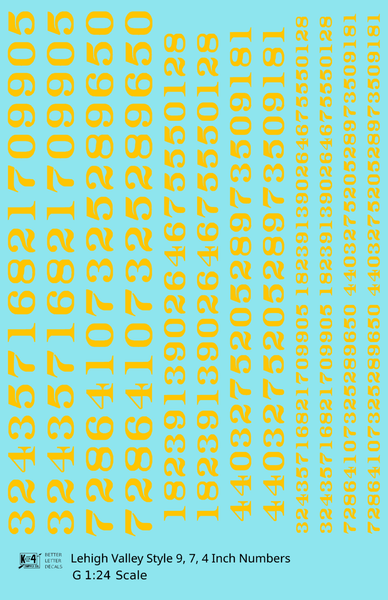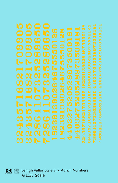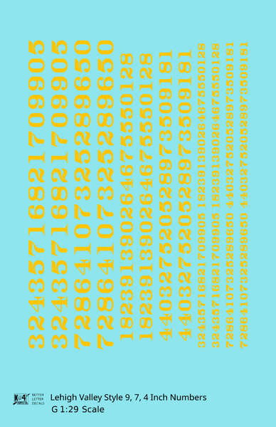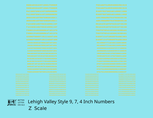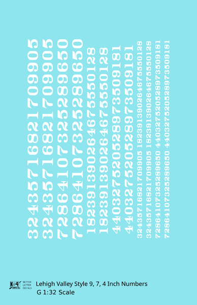 > Lehigh Valley Freight Car Numbers White 9, 7 and 4 Inch Renumber - Decal - Choose Scale and Color