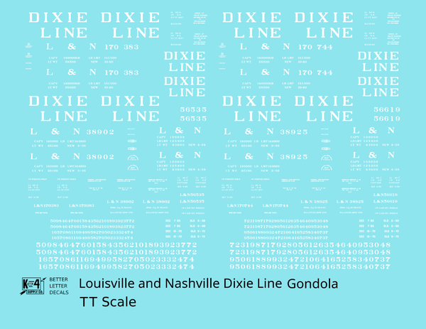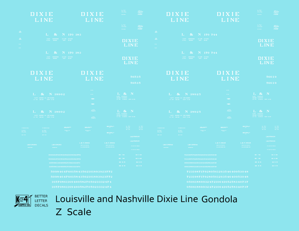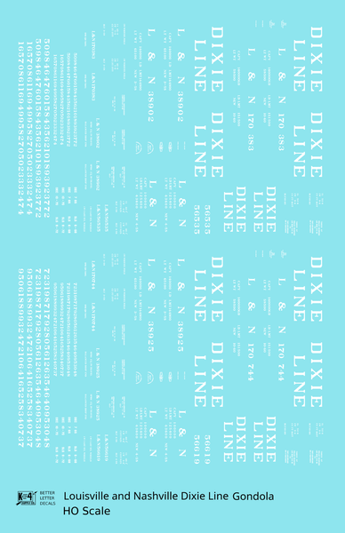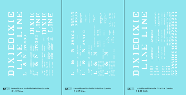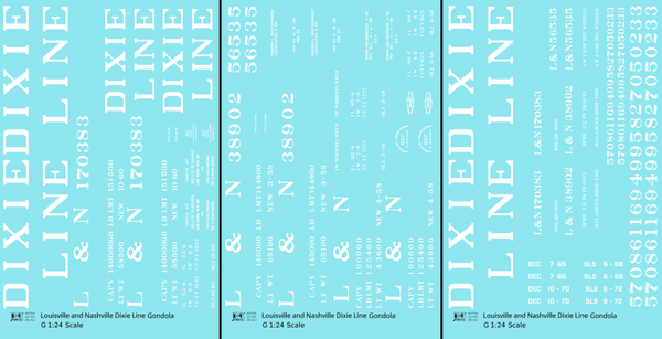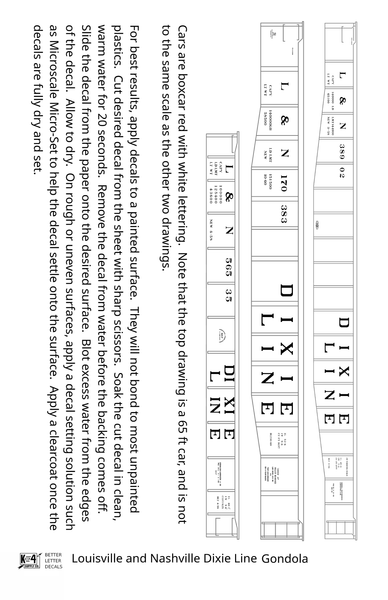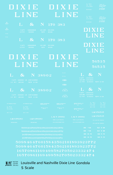 Louisville and Nashville Gondola White Roman Dixie Line - Decal - Choose Scale