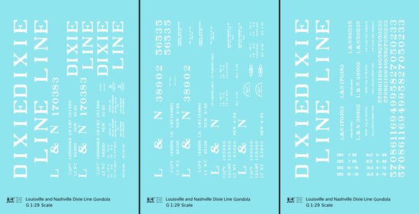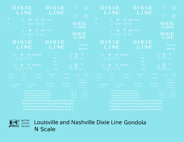 > Louisville and Nashville Gondola White Roman Dixie Line - Decal - Choose Scale