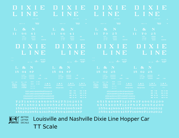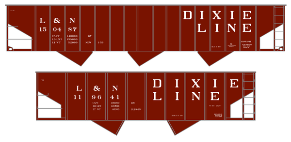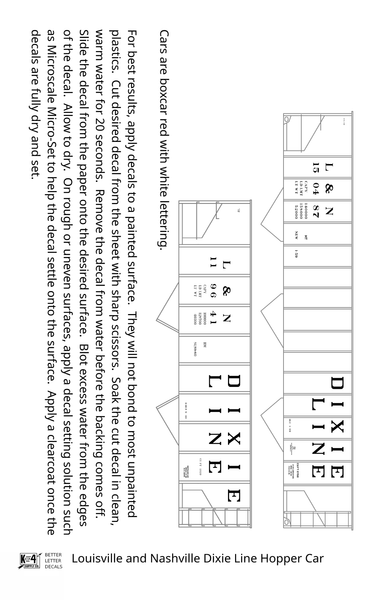 > Louisville and Nashville Hopper Car White Roman Dixie Line - Decal - Choose Scale