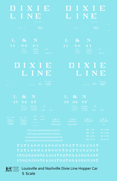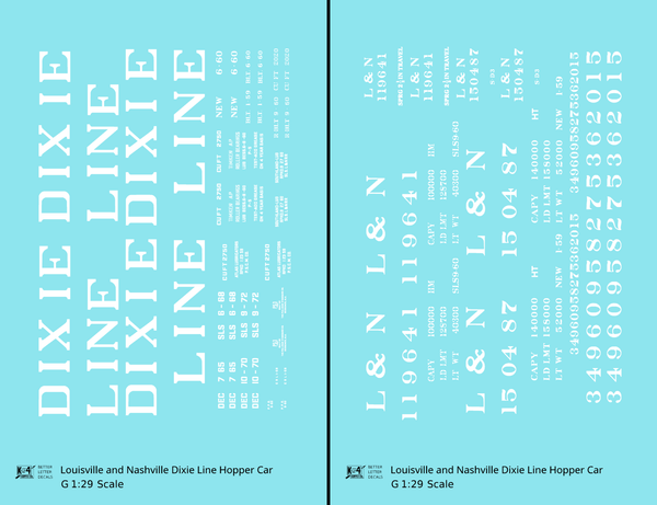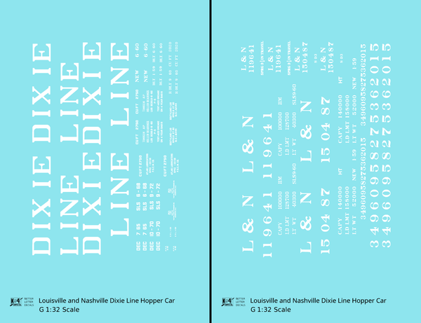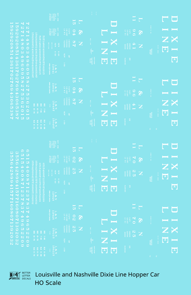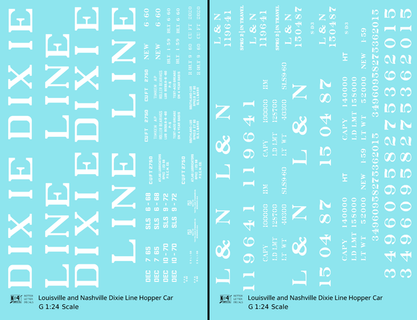 Louisville and Nashville Hopper Car White Roman Dixie Line - Decal - Choose Scale