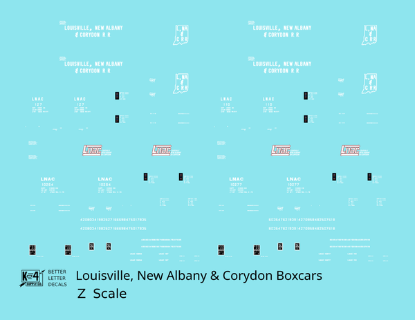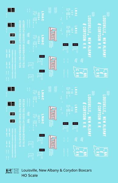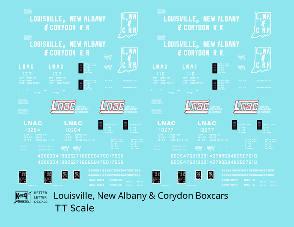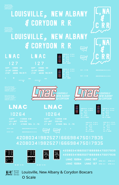 Louisville, New Albany and Corydon LNAC 40 Ft Boxcar White - Decal - Choose Scale