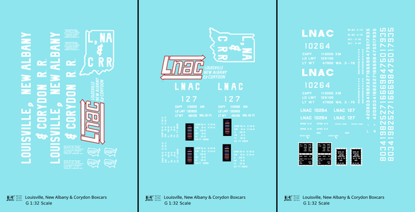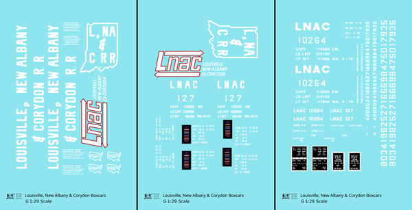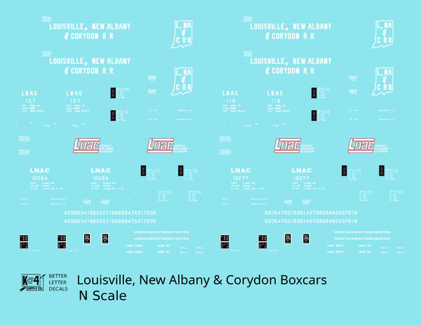 > Louisville, New Albany and Corydon LNAC 40 Ft Boxcar White - Decal - Choose Scale