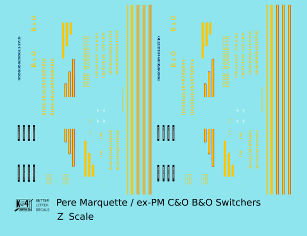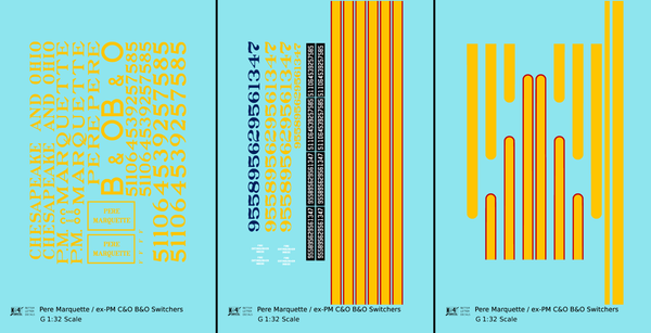 > Pere Marquette C&O B&O Diesel Switcher Locomotive Yellow and Red - Decal - Choose Scale