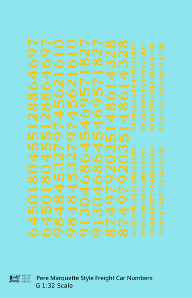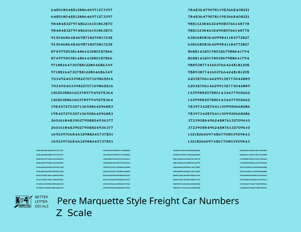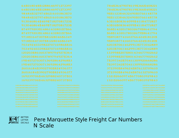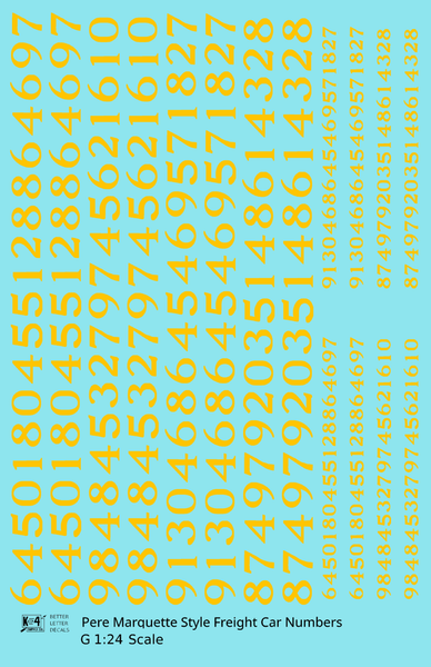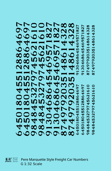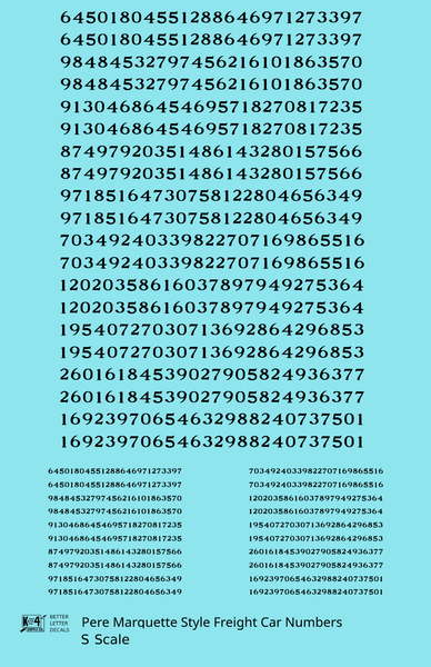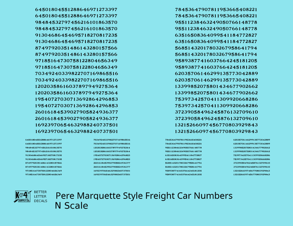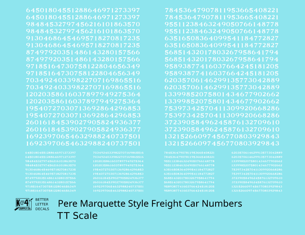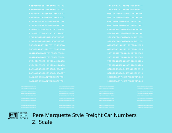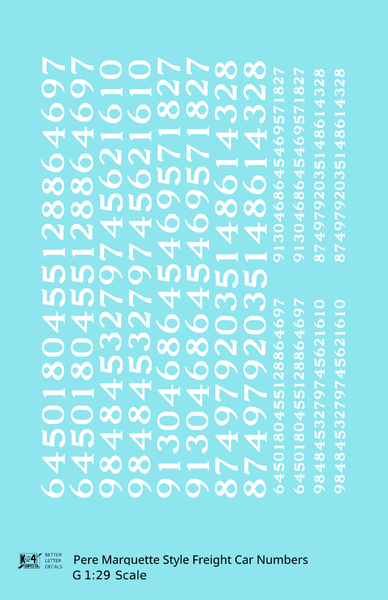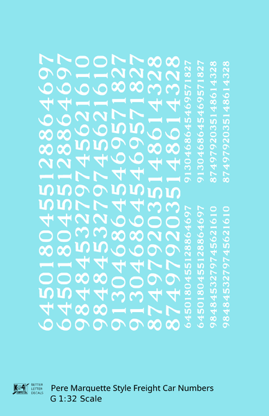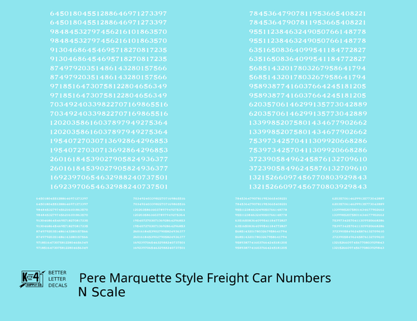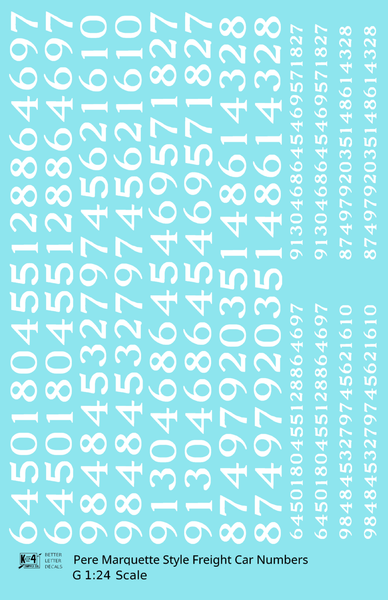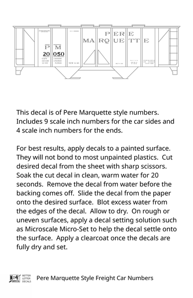 Pere Marquette Style Numbers White 9 and 4 Inch Renumber - Decal - Choose Scale and Color