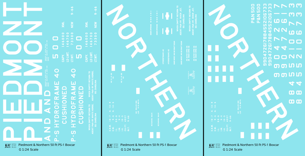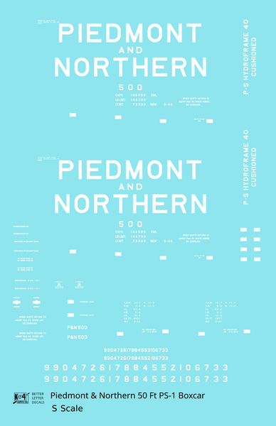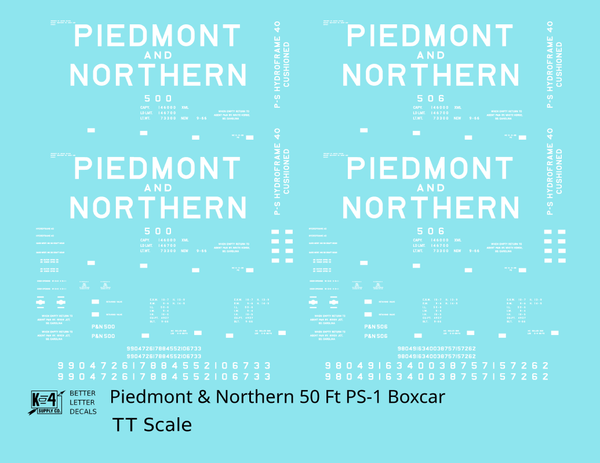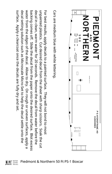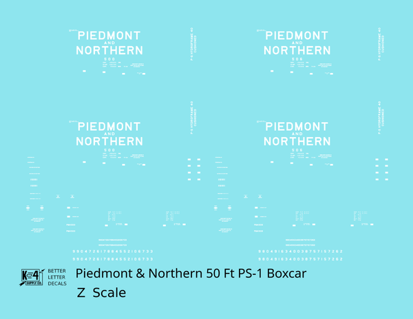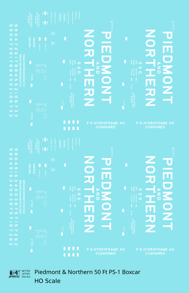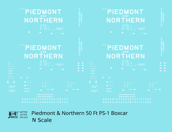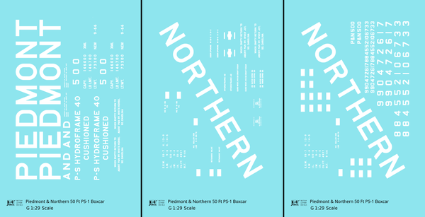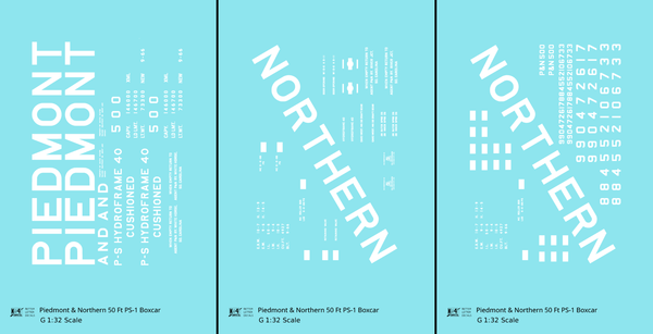 Piedmont & Northern 50 Ft PS1 Boxcar White - Decal - Choose Scale