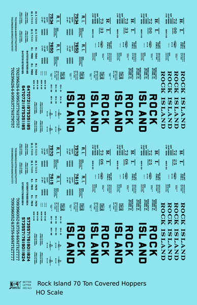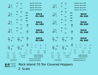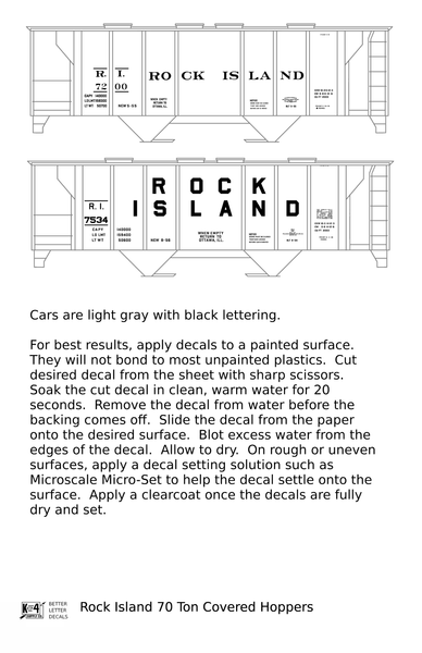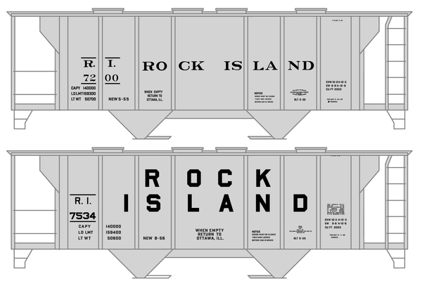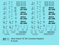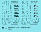 > Rock Island 70 Ton Covered Hoppers Black Roman, Block Letters - Decal - Choose Scale
