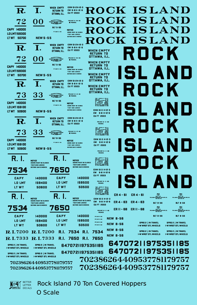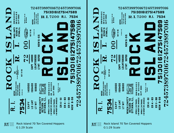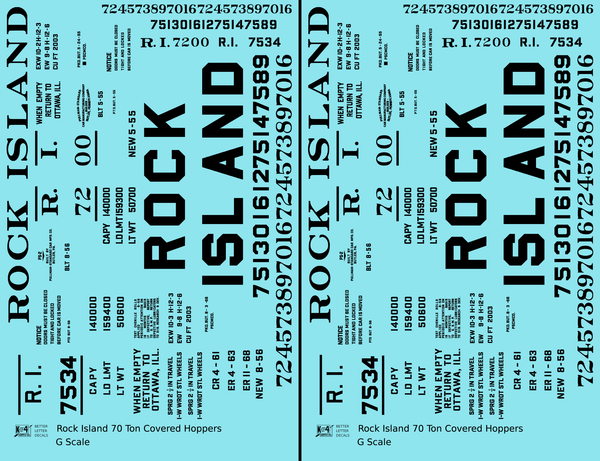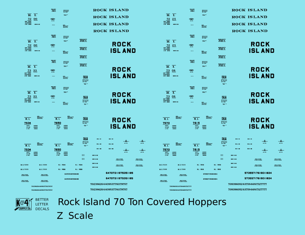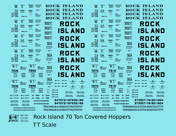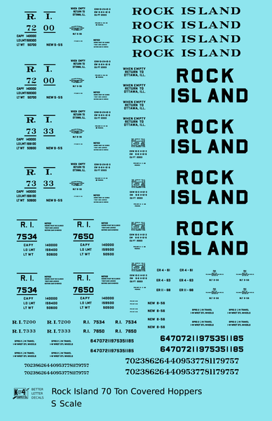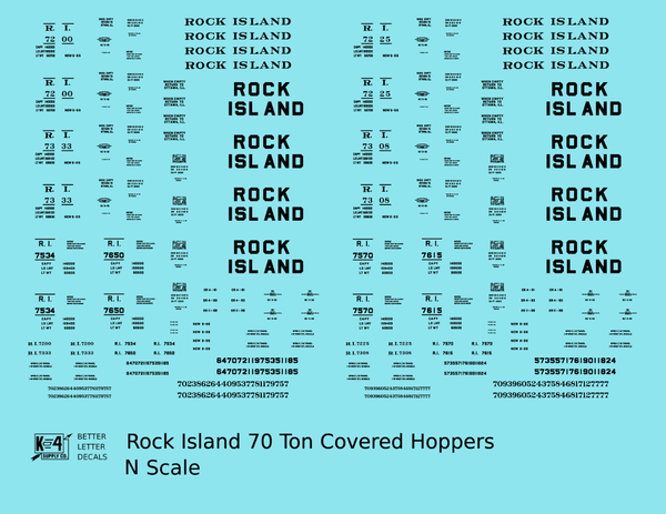 Rock Island 70 Ton Covered Hoppers Black Roman, Block Letters - Decal - Choose Scale