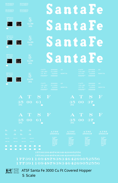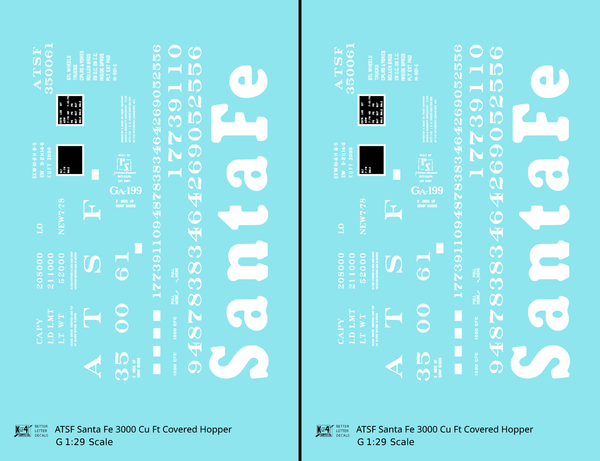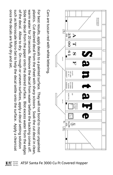 Santa Fe 3000 Cu Ft Covered Hopper White - Decal - Choose Scale