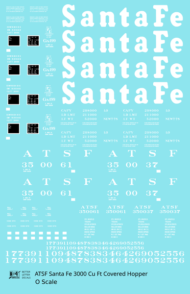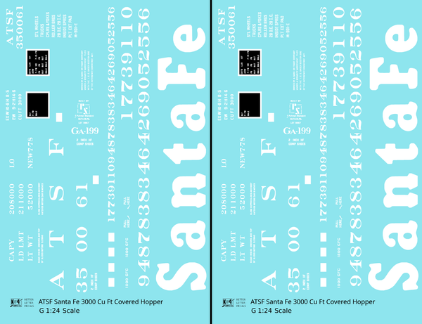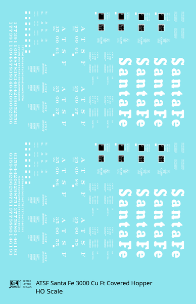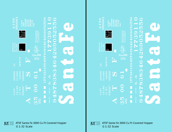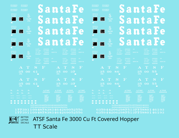 > Santa Fe 3000 Cu Ft Covered Hopper White - Decal - Choose Scale