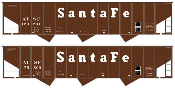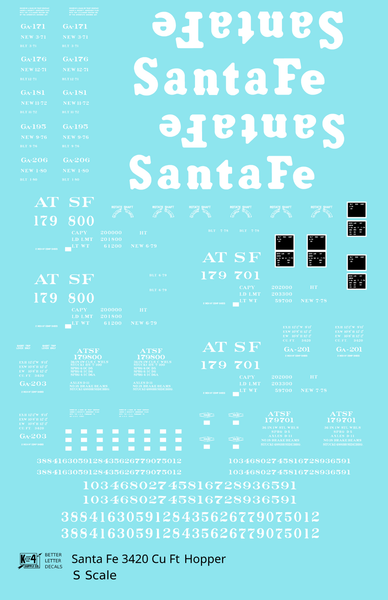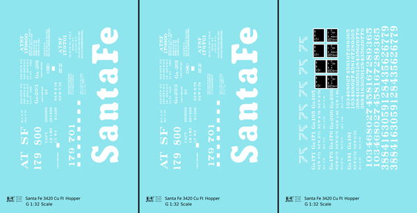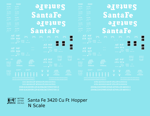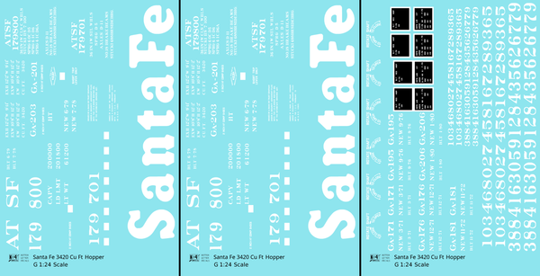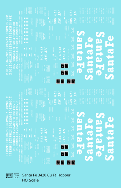 > Santa Fe 3420 Cu Ft Hopper Car White - Decal - Choose Scale