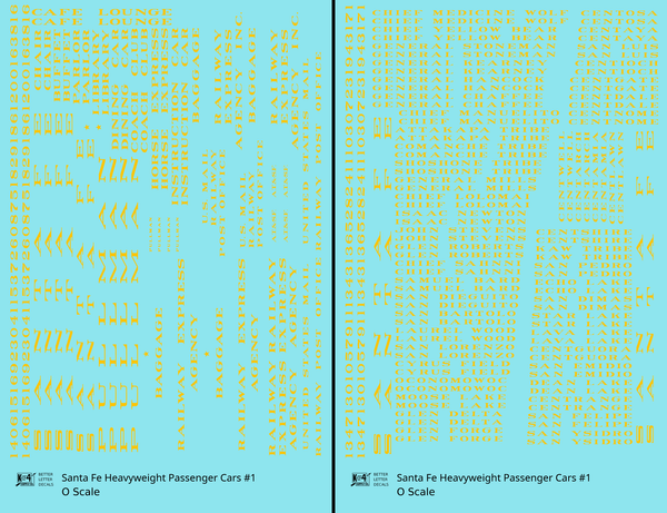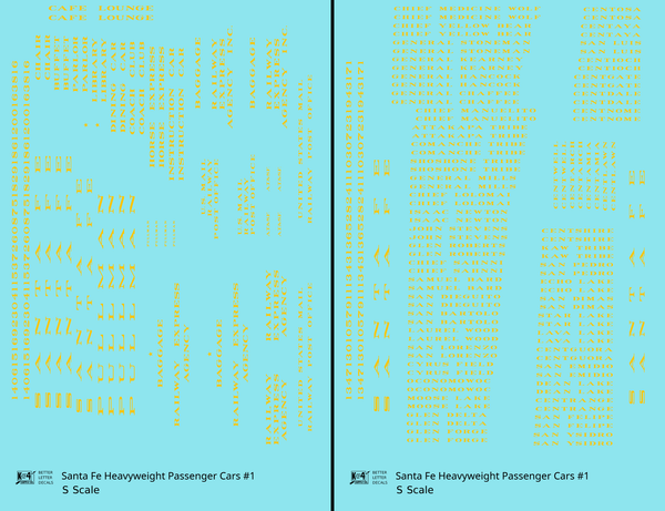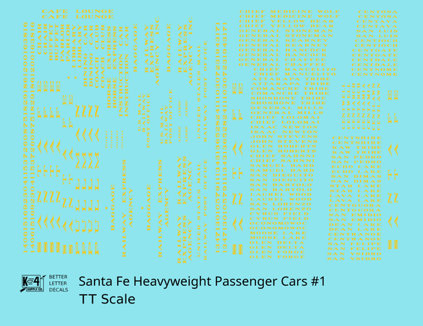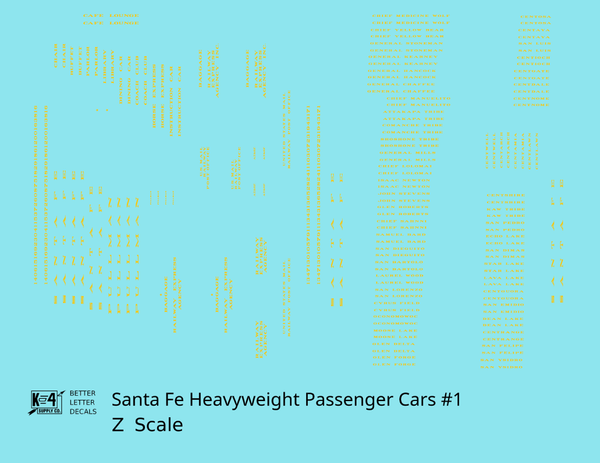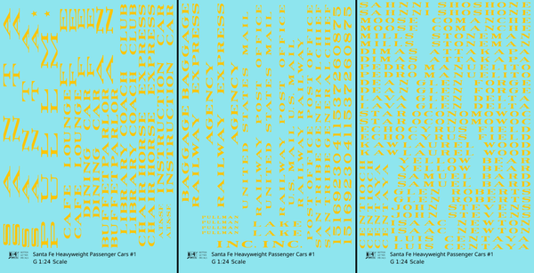 Santa Fe Heavyweight Passenger Cars Dulux Gold #1 - Decal - Choose Scale