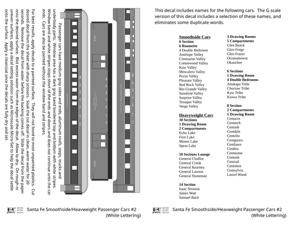 Santa Fe Smoothside/Heavyweight Passenger Cars White #2 - Decal - Choose Scale