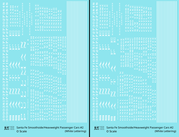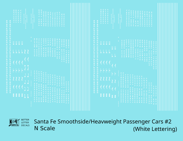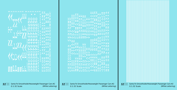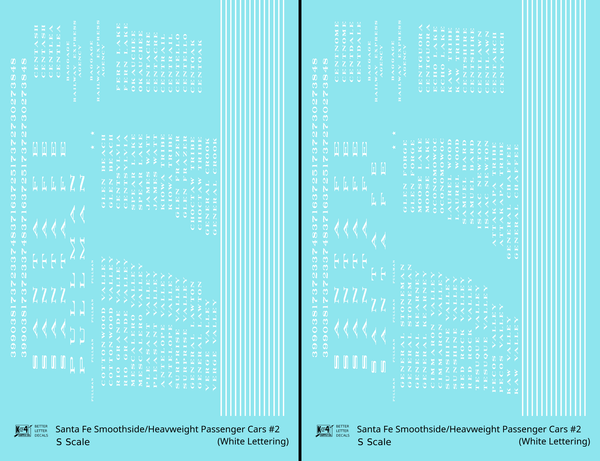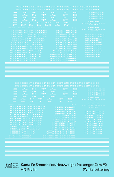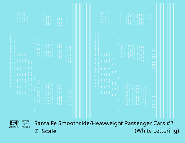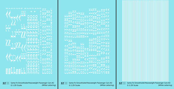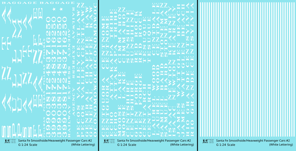 > Santa Fe Smoothside/Heavyweight Passenger Cars White #2 - Decal - Choose Scale
