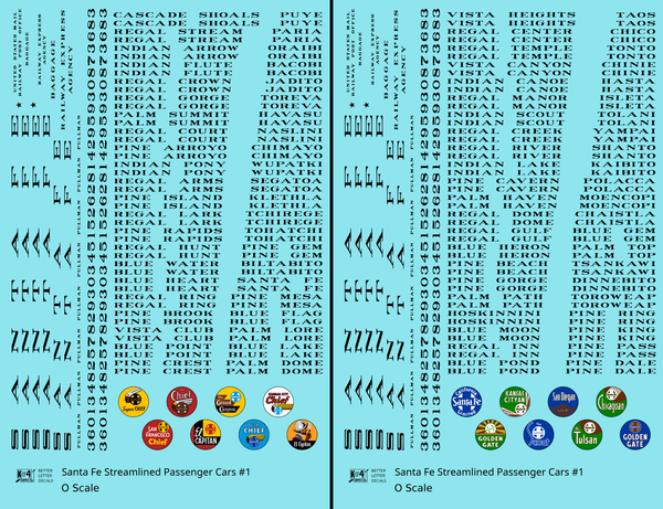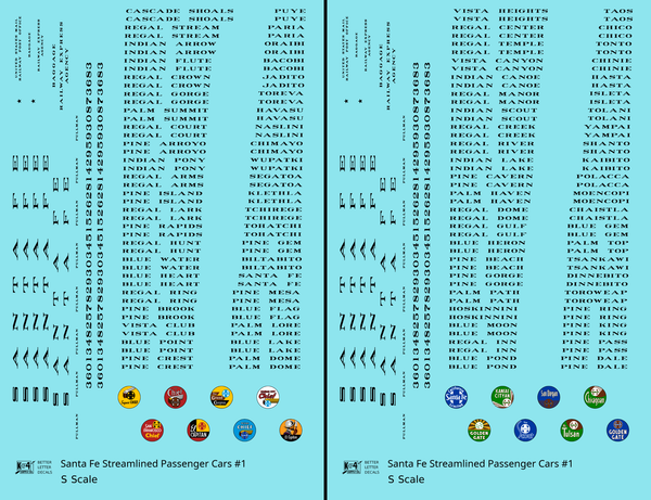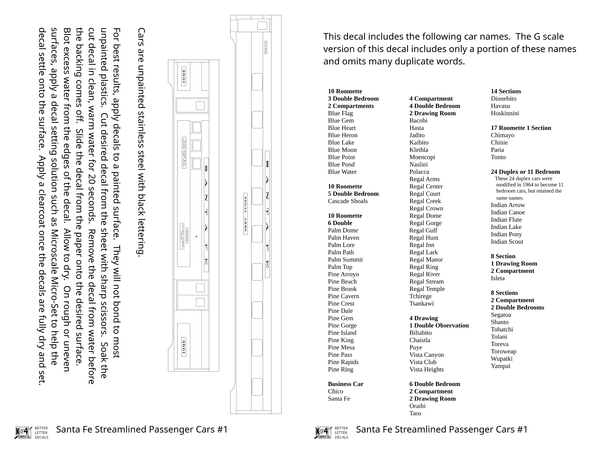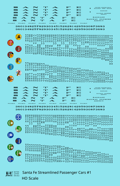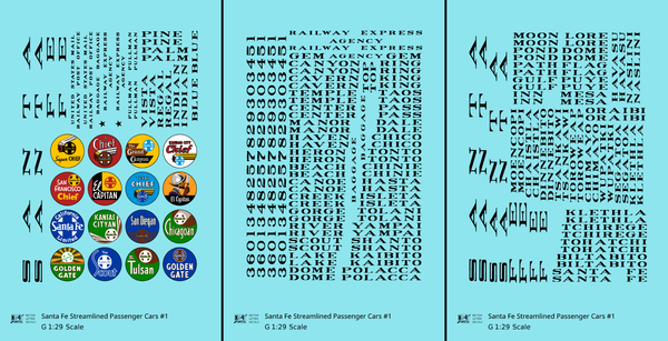 > Santa Fe Streamlined Passenger Cars Black #1 - Decal - Choose Scale