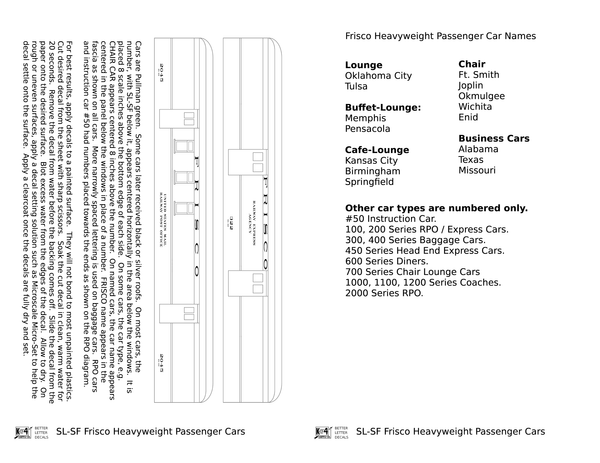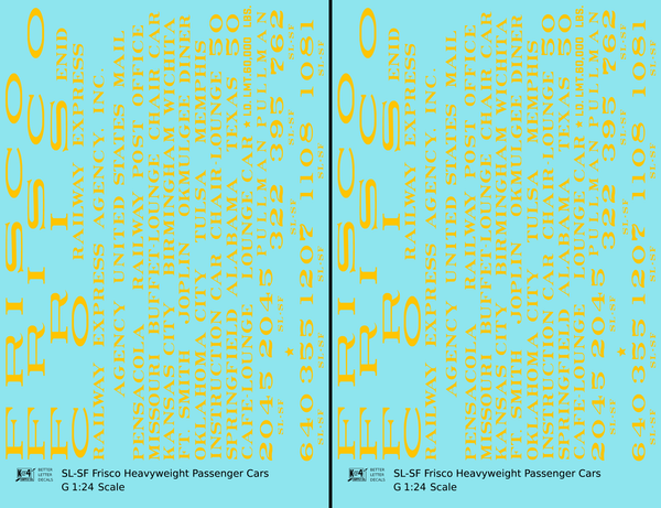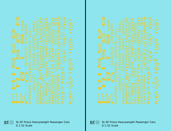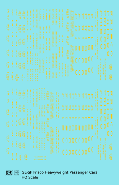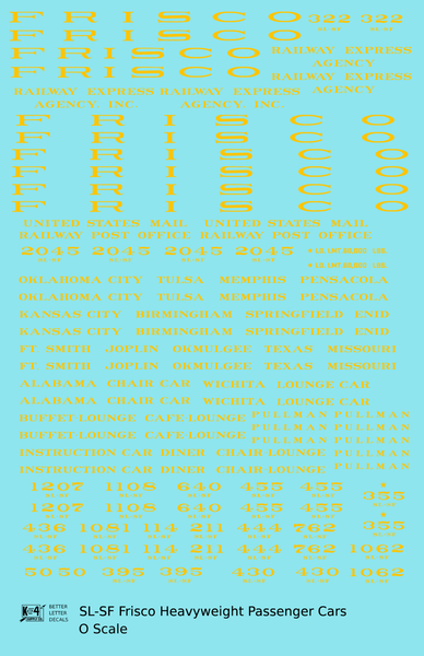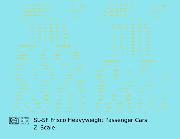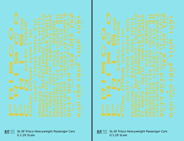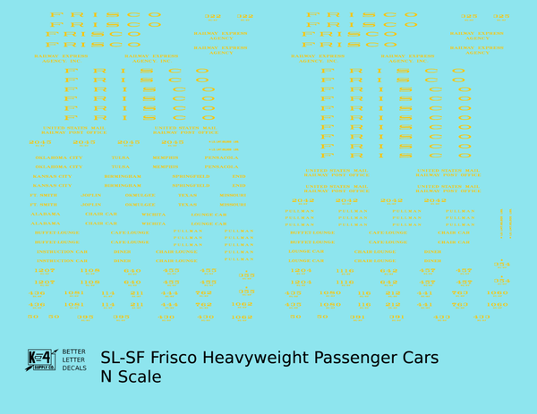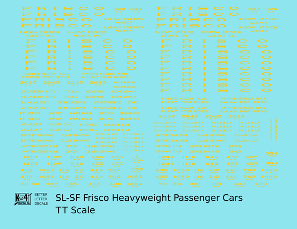 SLSF Frisco Heavyweight Passenger Cars Dulux Gold - Decal - Choose Scale