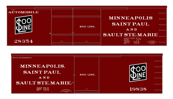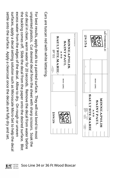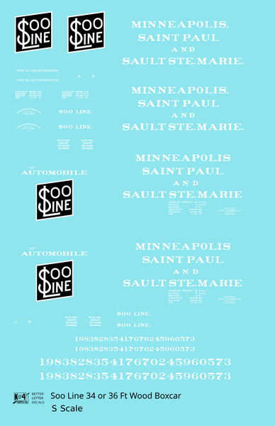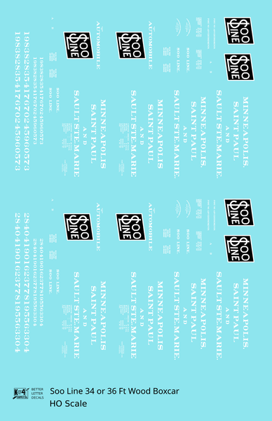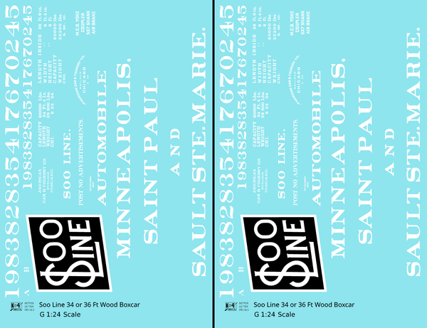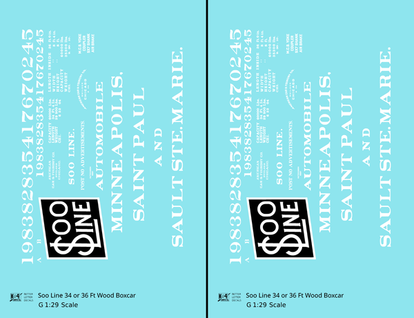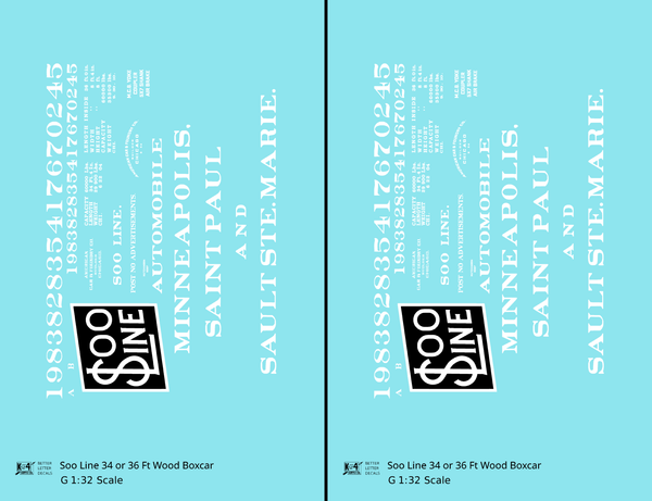 > Soo Line 34 and 36 Ft Wood Boxcars White and Black - Decal - Choose Scale