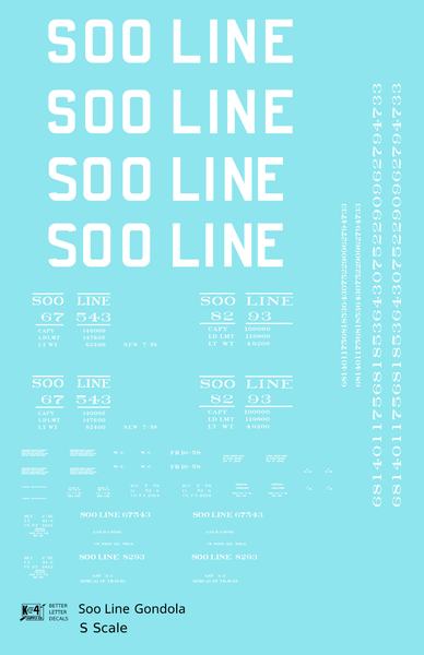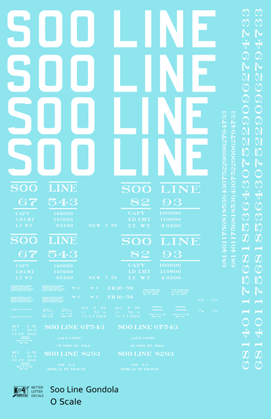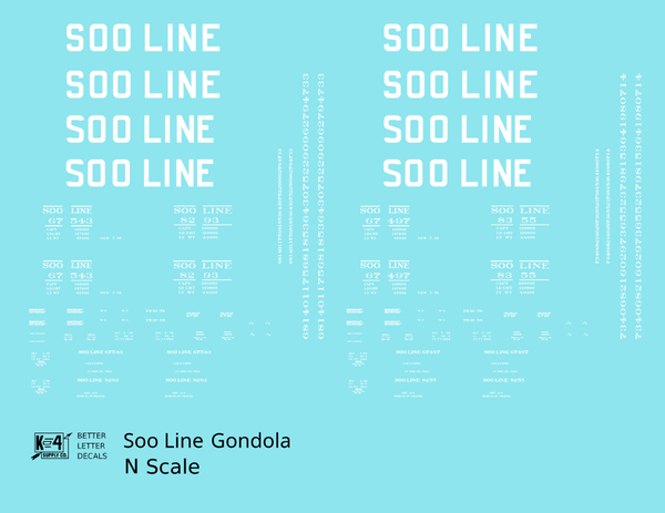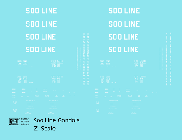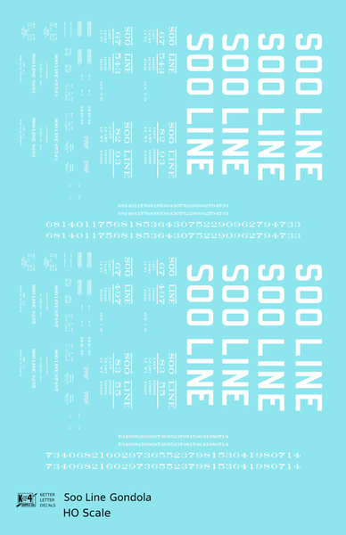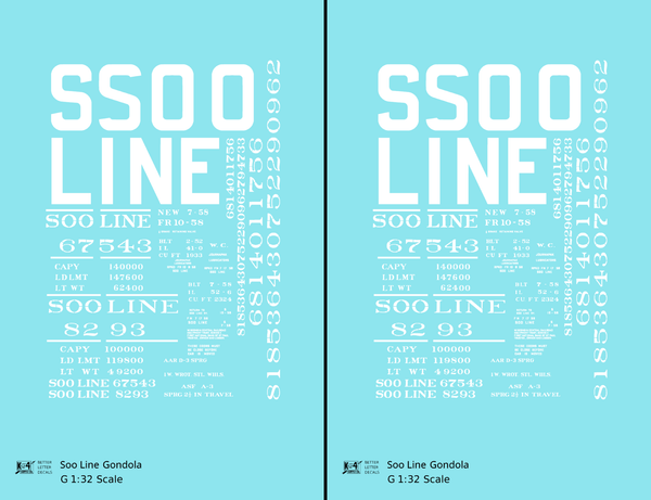 Soo Line 40 Ft, 52 Ft Gondolas White - Decal - Choose Scale