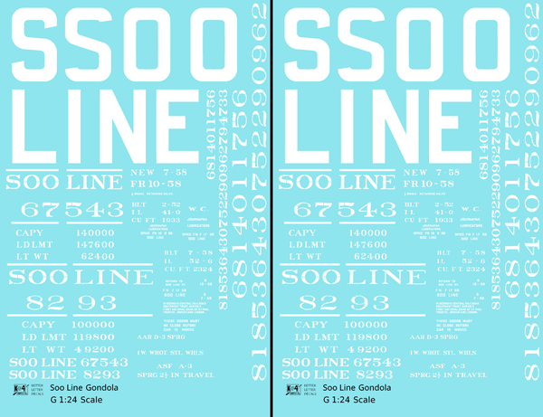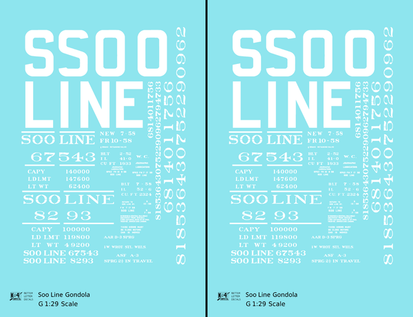 > Soo Line 40 Ft, 52 Ft Gondolas White - Decal - Choose Scale
