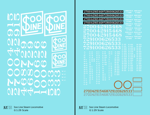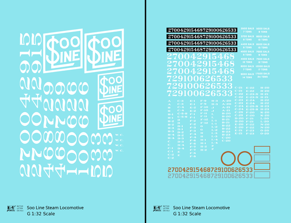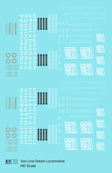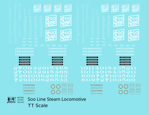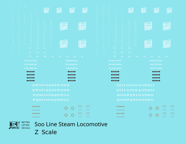 > Soo Line Steam Locomotive White - Decal - Choose Scale