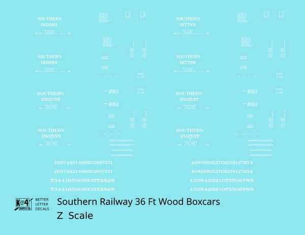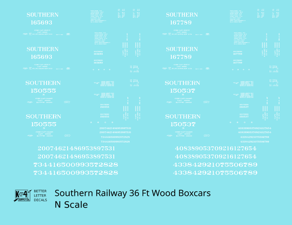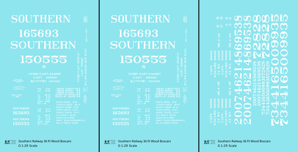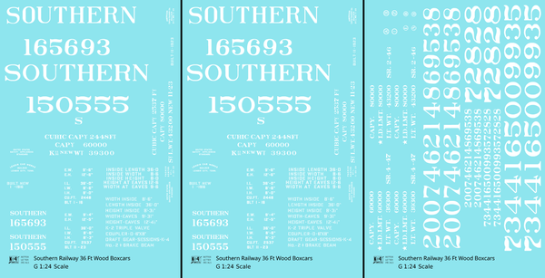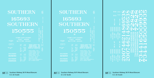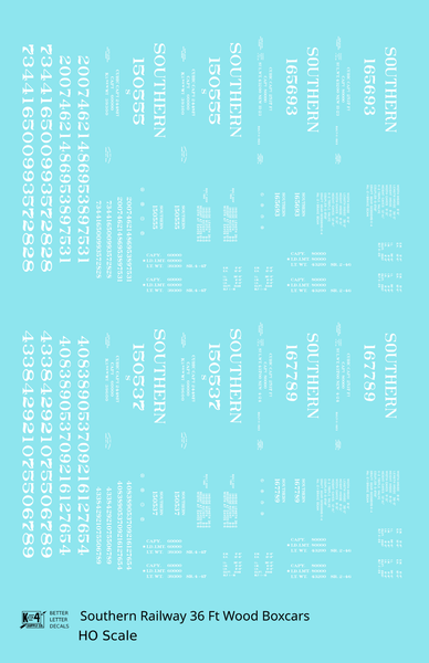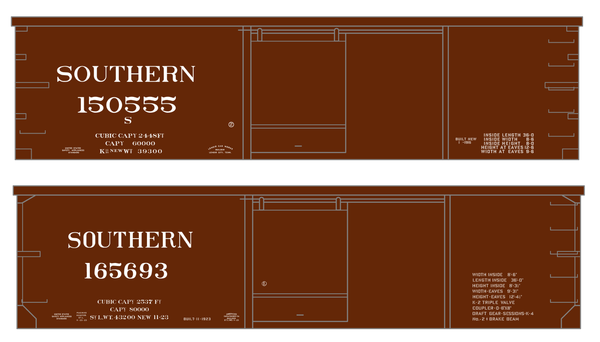 > Southern Railway 36 Ft Wood Boxcar White - Decal - Choose Scale