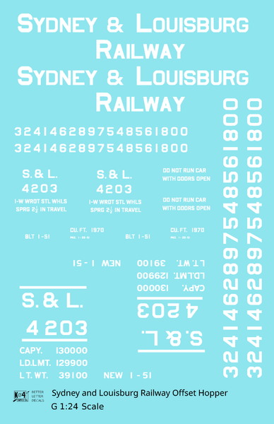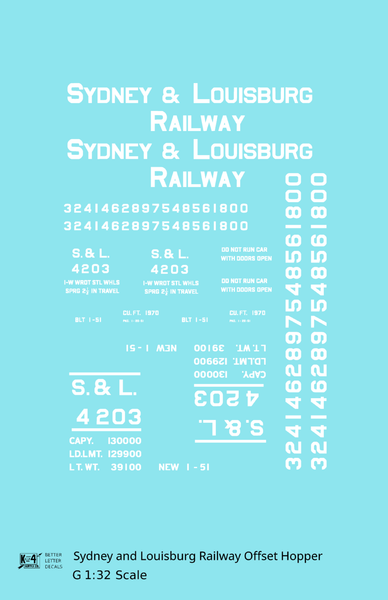 Sydney & Louisburg Offset Twin Hopper White Nova Scotia - Decal - Choose Scale