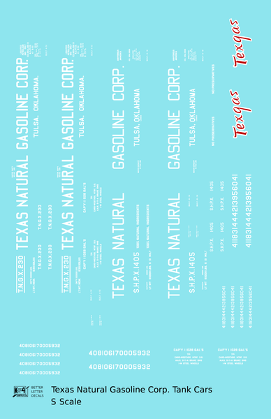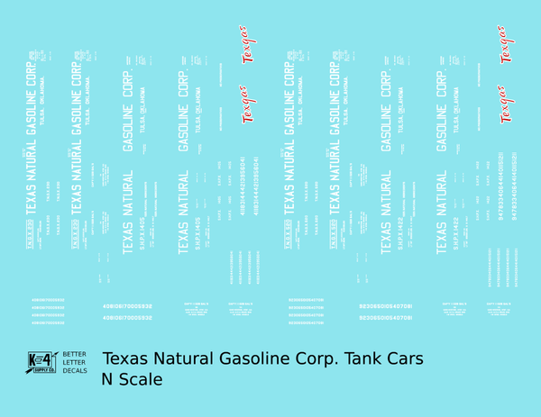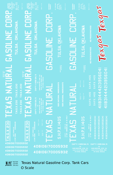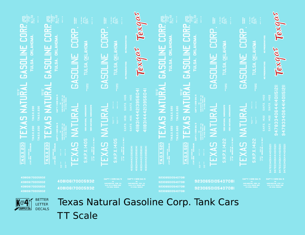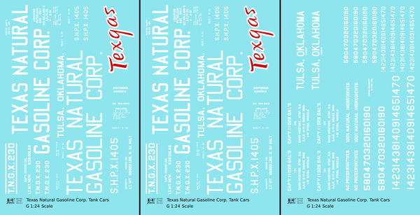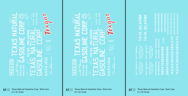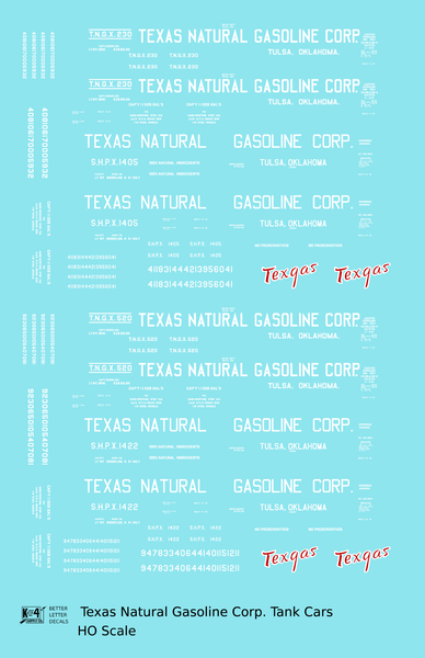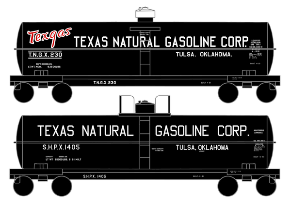 > Texas Natural Gasoline Corp ICC-105 Tank Car White and Red Texgas - Decal - Choose Scale