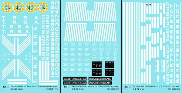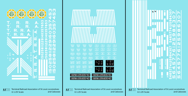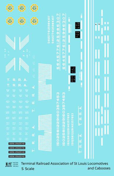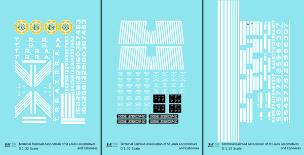 > TRRA Terminal Railroad Assn Of St Louis Diesel Locomotives and Cabooses White - Decal - Choose Scale