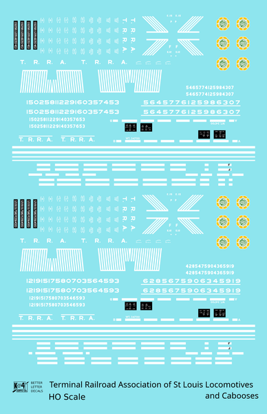 TRRA Terminal Railroad Assn Of St Louis Diesel Locomotives and Cabooses White - Decal - Choose Scale