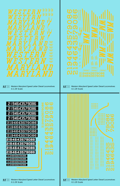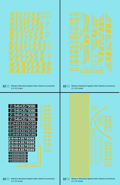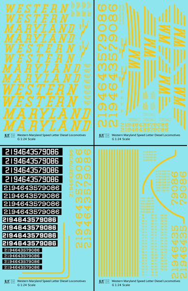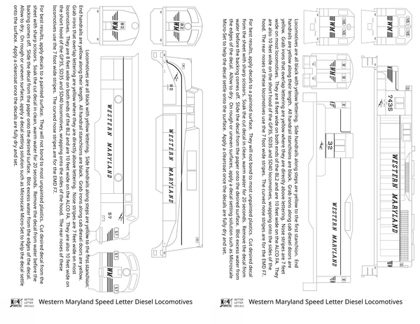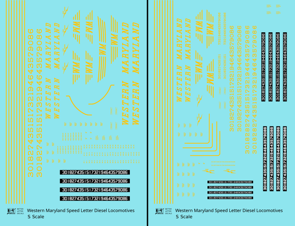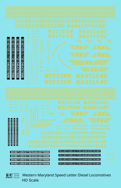 Western Maryland Diesel Locomotive Yellow Speed Letter - Decal - Choose Scale